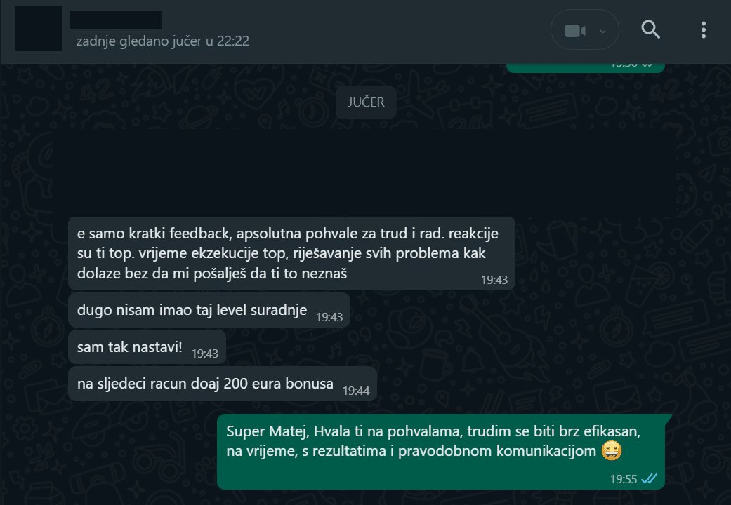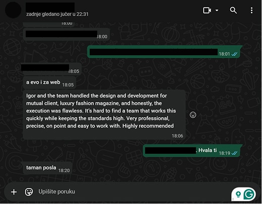 Posted on Matt J.Trustindex verifies that the original source of the review is Google. odlično iskustvoPosted on Tanja LemoTrustindex verifies that the original source of the review is Google. Igor mi je radio redizajn i poboljšanja na webu te SEO optimizaciju. Sad čekamo rezultate pa povratno javim. Ali za sad sam superzadovoljna ☺️ Igor mi je ostavio veoma profesionalan dojam, jako je ljubazan i otvoren za dogovor te uljeva povjerenje što je meni osobno od velike važnosti. Vidim da se trudi i smatram da ćemo imati dugoročnu poslovnu suradnjuPosted on Ivaris DevTrustindex verifies that the original source of the review is Google. We worked with this company as a collaborator, and the cooperation exceeded expectations. Communication was clear and efficient, feedback was timely, and the overall workflow was smooth and well-organized. They are a reliable team that takes responsibility and values quality. We would gladly collaborate with them again.Posted on Marko CvijicTrustindex verifies that the original source of the review is Google. Igor and the team handled the design and development for mutual client, a famous luxury fashion magazine, and honestly, the execution was flawless. It’s hard to find a team that works this quickly while keeping the standards high. Very professional, precise, on point and easy to work with. Highly recommendedPosted on Bartol PopovićTrustindex verifies that the original source of the review is Google. Odlična izrada web stranice, na vrijeme i po dogovoru! Sve preporuke!Posted on Matija BarićTrustindex verifies that the original source of the review is Google. Jako ugodno i pozitivno iskustvo. Suradnja je bila odlična od početka do kraja. Profesionalnost, brzina i jasna komunikacija su na najvišoj razini, a svaki dogovor je ispoštovan točno kako je i obećano. Topla preporuka svima koji traže izradu web stranice.Posted on Stjepan ĆurićTrustindex verifies that the original source of the review is Google. Sve preporuke za Igora, pouzdan, brz, jednostavan i profesionalan. Ukoliko trebate web i održavanje ne tražite dalje.Posted on Phillip BlackTrustindex verifies that the original source of the review is Google. Odlično,sve preporukePosted on Vanja RakocevicTrustindex verifies that the original source of the review is Google. Profesionalno i ljubazno osoblje. Brza i kvalitetna usluga.